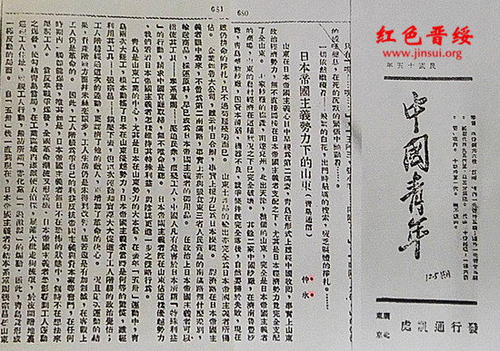 1925年6月20日,关向应以仲冰的笔名在《中国青年》124期上发表《日本帝国主义侵略下的山东》一文,介绍山东的社会状况和山东人民的革命斗争情况。