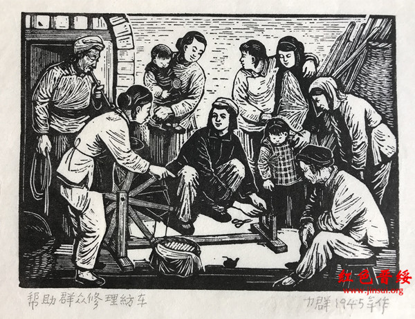 帮助群众修理纺车(版画) 晋绥艺术家力群1945年创作