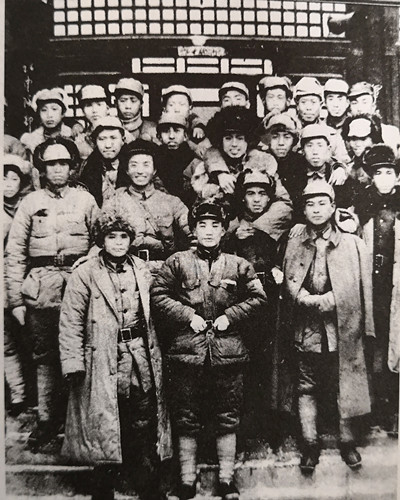 1940年2月,二专署领导干部与工卫旅21团干部在兴县合影。前排左起:21团团长周子桢、张国声。