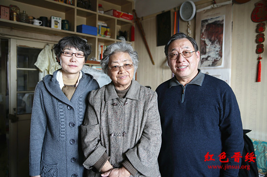 到关翠玉大姐家中接受捐书。左起:杜秀文、关翠玉、段晓飞。