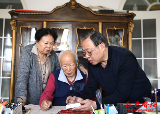 今天上午,基金会副理事长兼秘书长段晓飞,理事杜秀文、田小明,专程看望了来京的晋绥老前辈、原十二和十三届中央委员、山西省委第一书记李立功叔叔,送去了基金会简报《红色晋绥》1、2期和内有中央电视台的电视纪录片《晋绥遗魂》及《晋绥革命烈士陵园—图片集》视频的U盘。