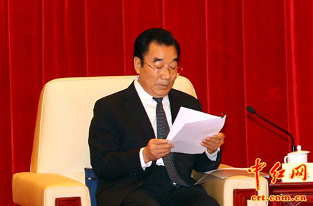 全国政协常务副秘书长孙怀山在座谈会上发言。(摄影:栗石毅)