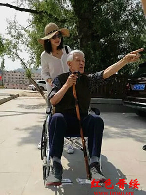 当天下午,老人不顾劳累,又来到旧址中当年美术工场所在地。车行半山坡,当轮椅不能上去时,他坚持要自己走上去,最后在儿子和大家的搀扶下走到当年居住过的院落。