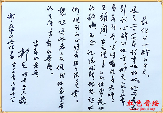 多么感人肺腑的延安情怀、多么动人心魄的鲁艺情思!如不是亲眼所见,很难想象这是出自九十六岁高龄的耄耋老人之手,这分明是用一颗赤诚的心穿越时空回味鲁艺岁月!