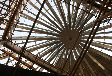 正在建设的西侯度陈列馆内部  郭荣摄影
