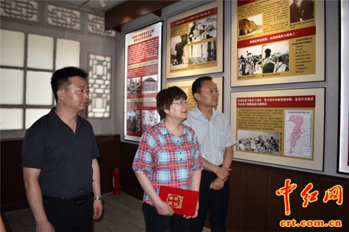 郑小提(中)参观岢岚县毛主席路居馆。(中红网布铁威摄)