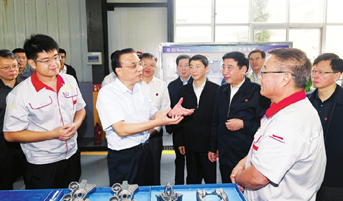 9月5日,李克强总理考察临汾华翔集团公司。他强调,实施创新驱动发展战略,人才是第一要素,转变体制机制是关键。不光是中小企业,大企业通过搞“双创”同样能更好调动人的积极性和创造力,提高核心竞争力。记者李联军摄影报道
